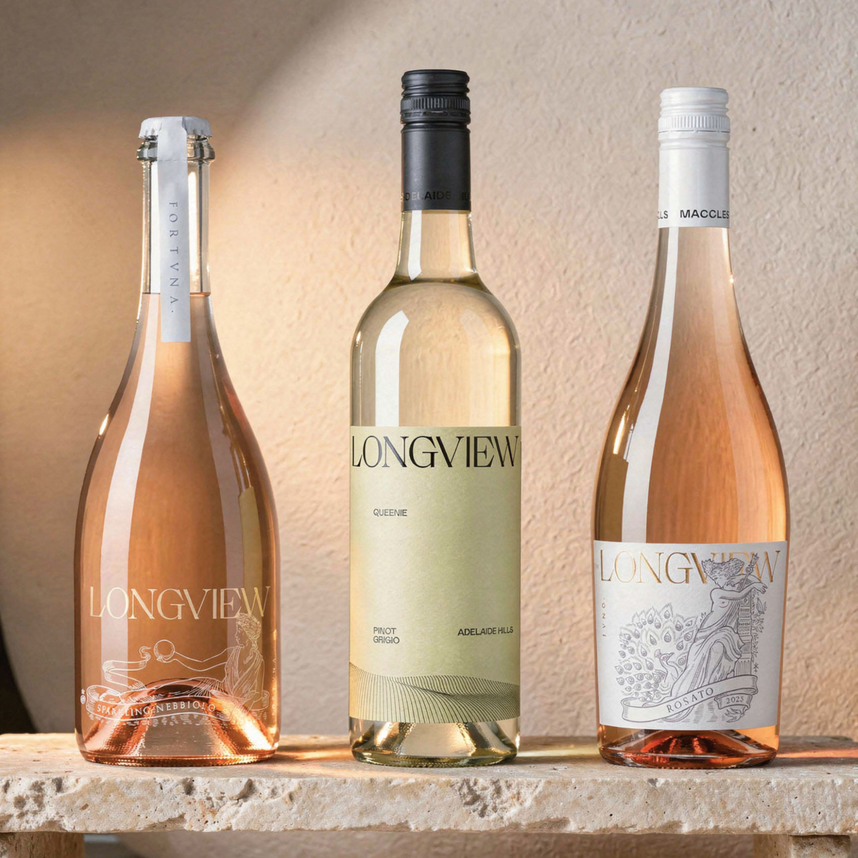 Inside the pack you will find two bottles of Queenie Pinot Grigio, two bottles of Fortuna Sparkling Nebbiolo, and two bottles of Juno Rosato.